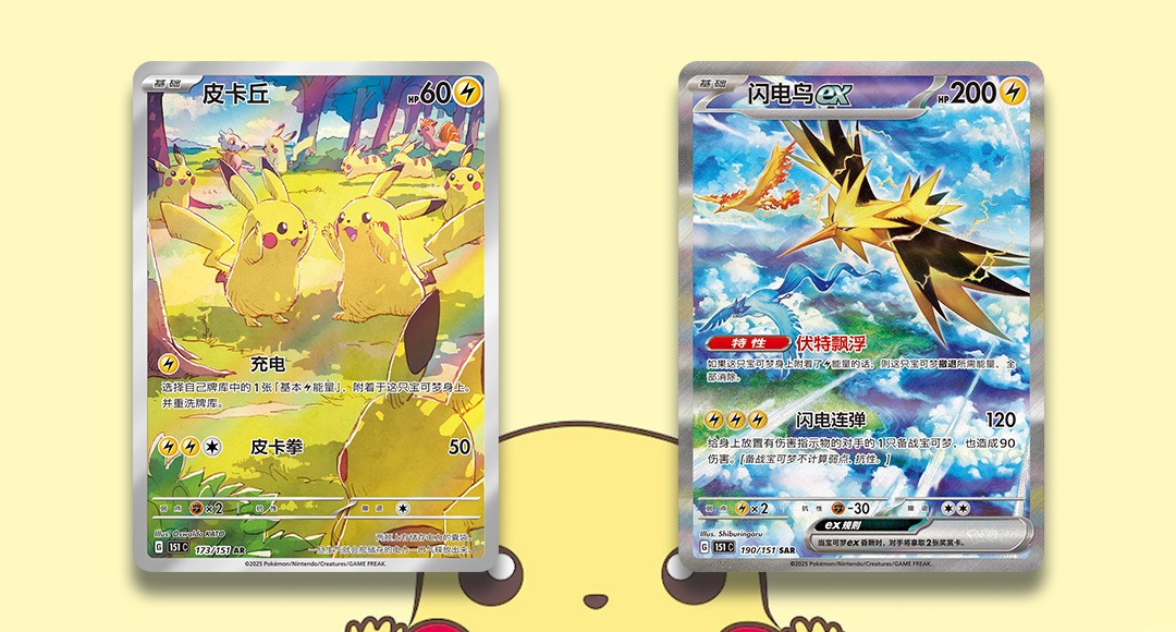 寶可夢卡牌系列全新補充包「收集啦151 聚」即將於10月17日登場,同步推出「收集啦151硬幣套裝 聚」與「收集啦151硬幣套裝ex 聚」,勢必再掀收藏熱潮!這次封面以六尾、皮卡丘與卡拉卡拉為主角,暗示火、雷、鬥屬性的寶可夢出現機率將高於其他屬性。卡包中收錄全新「AR稀有度」皮卡丘特別插畫閃卡,描繪皮卡丘、卡拉卡拉與六尾在陽光森林中愉快玩耍的溫馨畫面,充滿治癒氛圍。此外還有「閃電鳥ex」的特別藝術插畫閃卡亮相,極具收藏價值。「收集啦151硬幣套裝 聚」共139款,內含對應寶可夢閃卡與三包補充包,有機會抽中稀有「大師球紋樣閃卡」;而「收集啦151硬幣套裝ex 聚」則收錄寶可夢ex閃卡與多包補充卡包,甚至可能開出特別插畫閃卡!每組套裝皆附贈專屬寶可夢硬幣,包含3款普通色與1款隱藏款,對應屬性主題更添收藏樂趣。對寶可夢訓練家而言,這次「151 聚」系列絕對是不容錯過的年度重磅卡包!