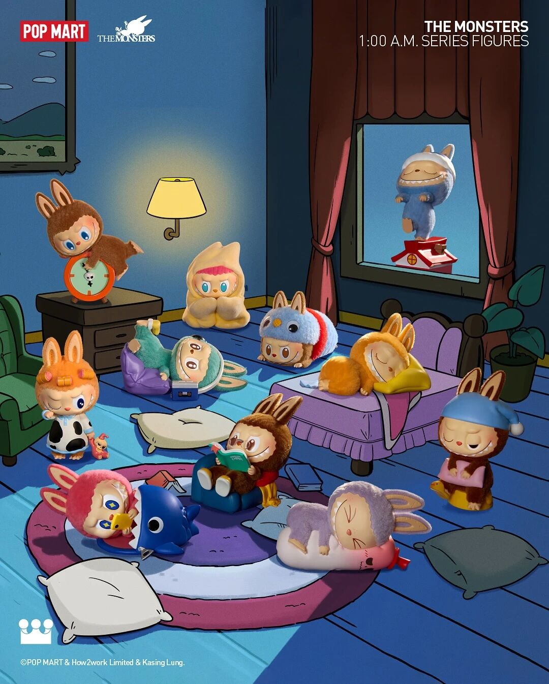 系列共含 10 款常規款 + 1 款隱藏款,整套聚焦 The Monsters 家族在凌晨時分的真實狀態,用多樣造型還原深夜裡的不同模樣 —— 有的躺在被窩玩手機,有的穿著睡衣揉眼睛,有的躺在床上放空,每一款都戳中深夜黨共鳴~ 隱藏款「暫停時間」自帶神秘 buff!