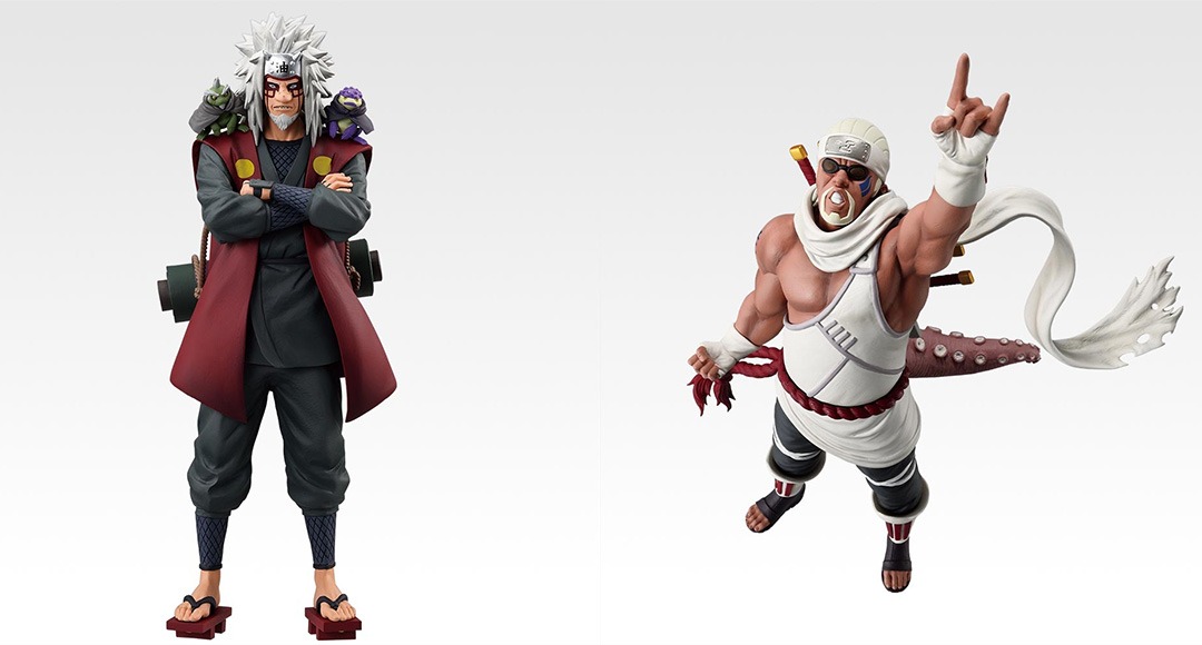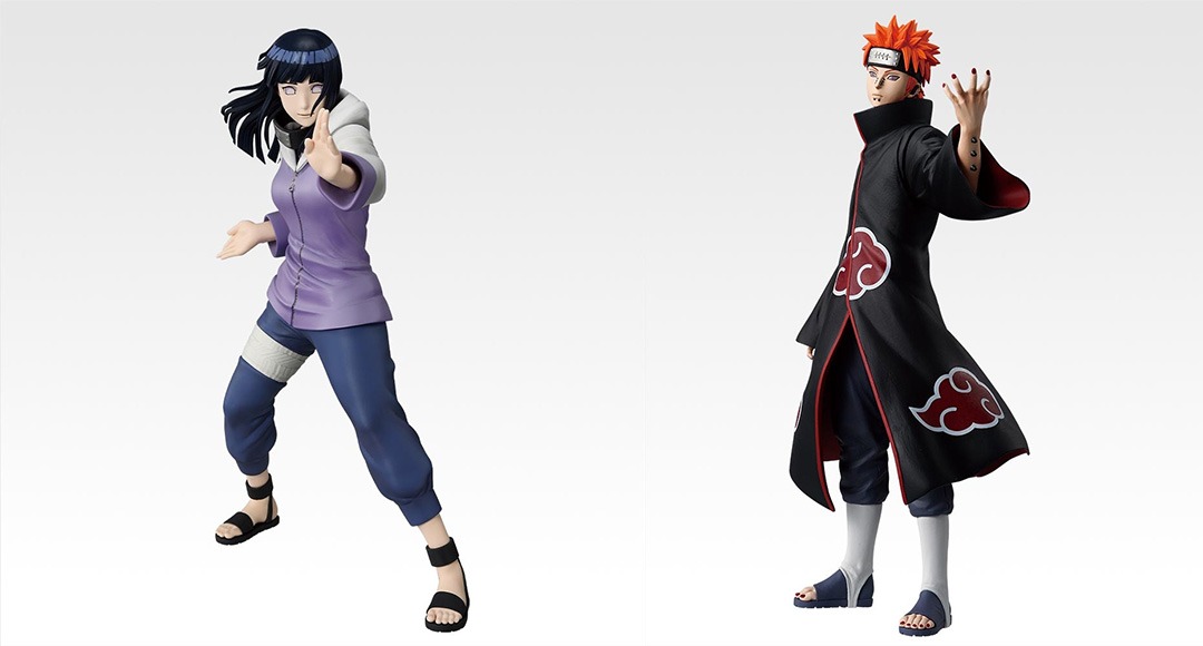 A 賞是「漩渦鳴人 仙人模式」,紅色披風、巨大卷軸與沉穩站姿,象徵鳴人成長後的力量與覺悟;B 賞「日向雛田」則首度以 MASTERLISE 規格立體化,白眼發動、結印動作細膩呈現她柔中帶剛的忍者意志;C 賞「培因(天道)」重現神羅天征的壓迫感,氣場十足;D 賞「奇拉比(殺人蜂)」以誇張動態與巨大體格成為系列中最具份量的模型之一;E 賞「自來也 仙人模式」則完整濃縮師父、戰士與犧牲者的形象,十分震撼。