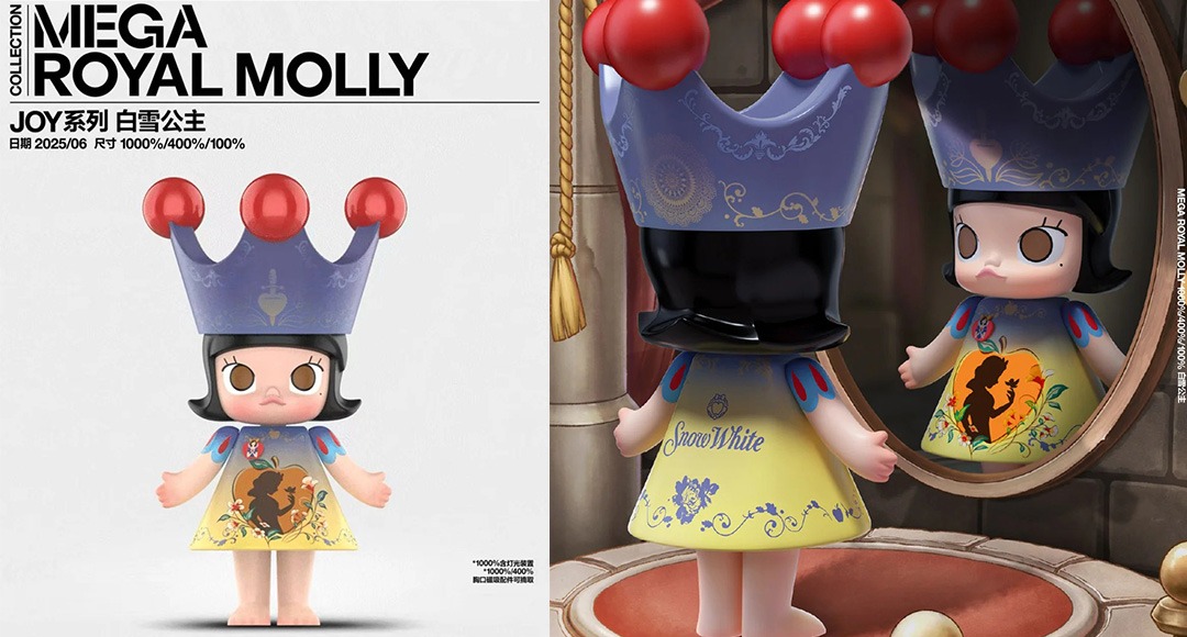 這次的白雪公主Molly戴上了華麗的皇冠,穿著經典的藍紅黃配色蓬蓬裙,裙擺上印有白雪公主圖案,還佩戴了蘋果紋樣的勳章,每一個地方都是細節滿滿,整體造型可愛又高貴!1000%版本已於2025年6月27日發售,而400%版本將於2025年7月3日發售,大家一起來期待吧!