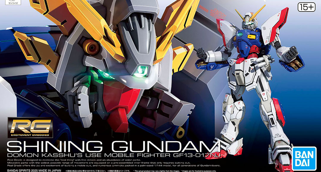 『RG 1/144 閃光鋼彈』套件運用白、灰、深灰、紅、深藍、黃、金、金屬綠...等豐富零件成型色製作,其中金色零件採用近年新技術「擬真金屬質感光澤成形」製作,呈現更加真實的金屬光澤,而再現必殺技「閃光掌」的綠色手掌零件也同樣採用該技術呈現。此外還能運用 RG 系列特色的「擬真質感貼紙」製雙眼、胸口等發光部位和機身標誌,十分霸氣!