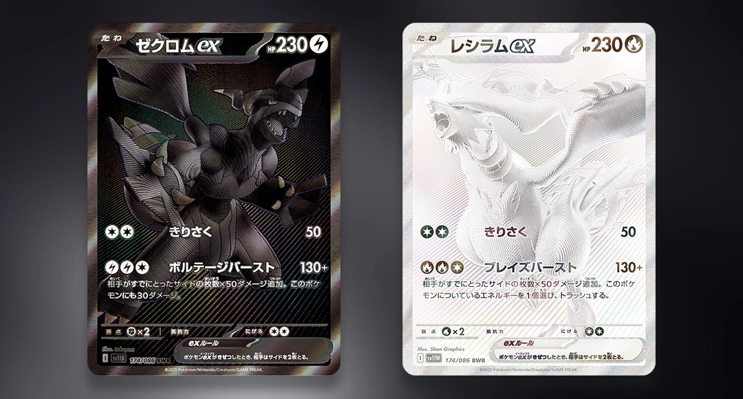此外捷克羅姆ex和萊希拉姆ex分別在全新稀有度BWR中登場,卡面真的超級精緻,捷克罗姆 ex 全身散发着神秘的黑色电光,好像蕴含着无尽的力量;莱希拉姆 ex 则周身环绕着圣洁的白色火焰,展现出强大的威严,絕對是值得訓練家們收藏的卡牌!除此之外,還收錄了精靈球圖案的特殊加工豪華鏡面式樣卡牌,千萬不要錯過啦!
