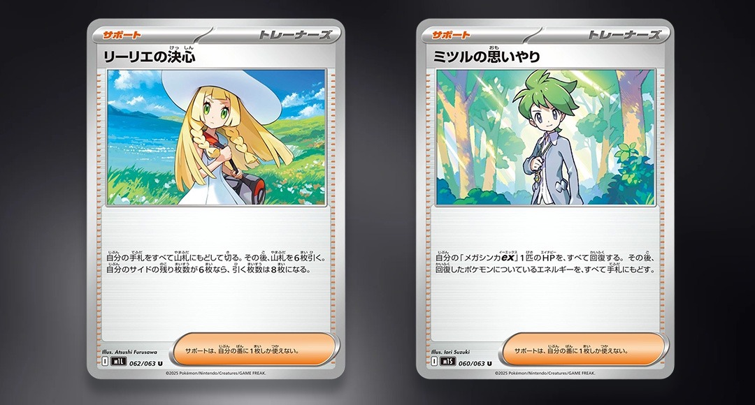 除了擴充包的新情報外,還會同步發售的禮盒商品「頂級訓練家收藏箱MEGA」「超級勇氣 特別組合 莉莉艾」和「超級交響樂 特別組合 阿塞蘿拉」,頂級訓練家收藏箱一如既往地收錄了各項實用的卡牌,包含首次再收錄的ACE SPEC「不公印章」;而「特別組合」則收錄了專屬的卡套、卡盒週邊,以及莉莉艾和阿塞蘿拉的特典卡,大家的钱包準備好出血了吗!