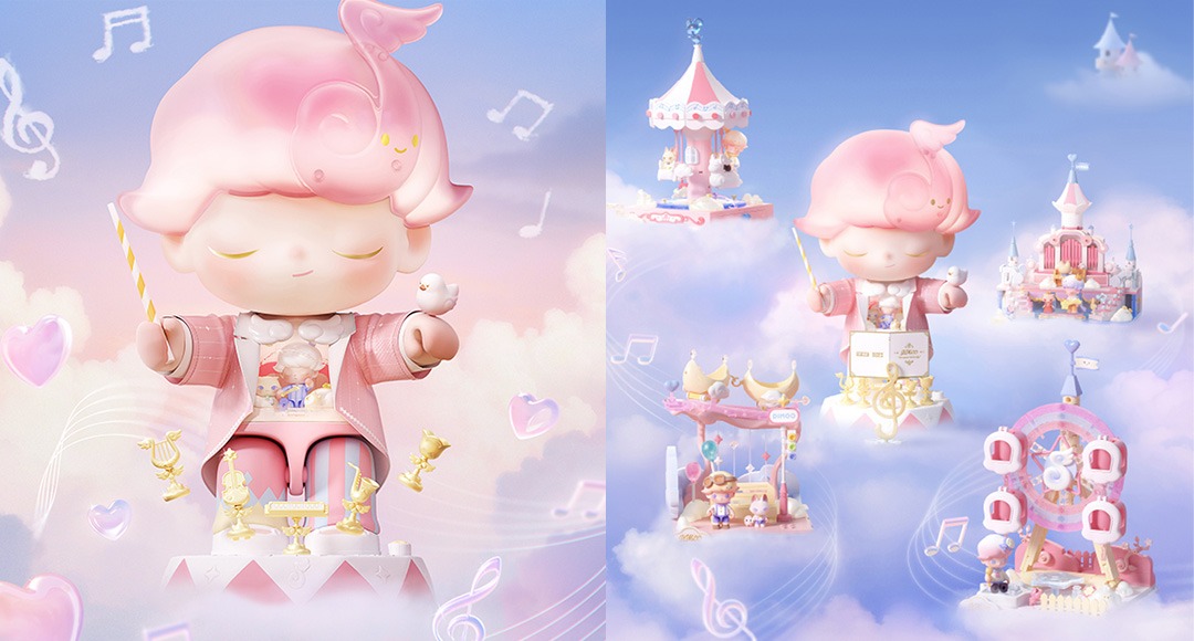 DIMOO夢響曲系列拼搭積木一共有五款:夢響指揮家、弦月飛車、鈴蘭摩天輪、琴音舞會和星河木馬。