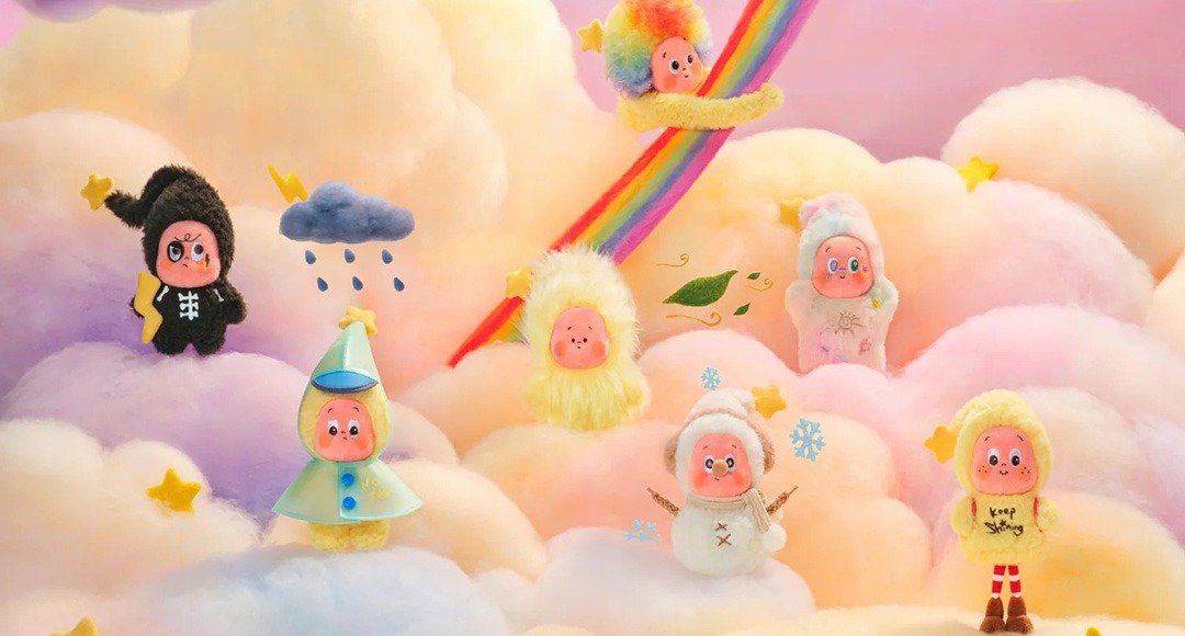 除了星星人點亮系列場景手辦之外,還推出了星星人好夢氣象局系列絨毛吊飾盲盒,盲盒內含6個常規款和1個隱藏款,把晴雨雷電全做成了絨毛小吊飾,每隻都有小心思,像在說「今天也要好好生活」,隱藏款「好彩天天來」更絕,彩虹爆炸頭+鈕扣手臂,能掛手腕當幸運符!誰不想每天被彩虹崽說「今天好運來」,治癒感直接拉滿~