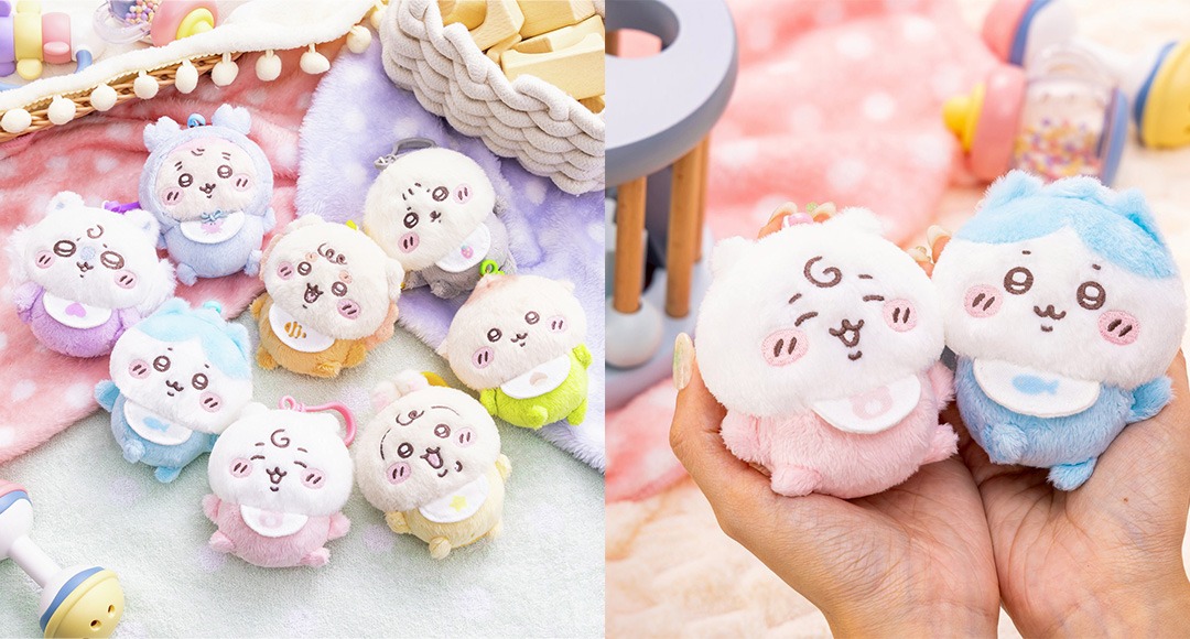 本次「吉伊卡哇 Baby 系列」共有八款角色登場:吉伊卡哇、小八貓、烏薩奇、小桃、栗子饅頭、獅薩、海獺、古本屋,每一個都帶著可愛的小圍兜,萌翻全場。除了吊飾之外,吉伊卡哇、小八貓、烏薩奇還化身為襁褓裡的寶寶,表情憨態可掬,完全還原「寶寶萌態」,瞬間融化粉絲們的心~