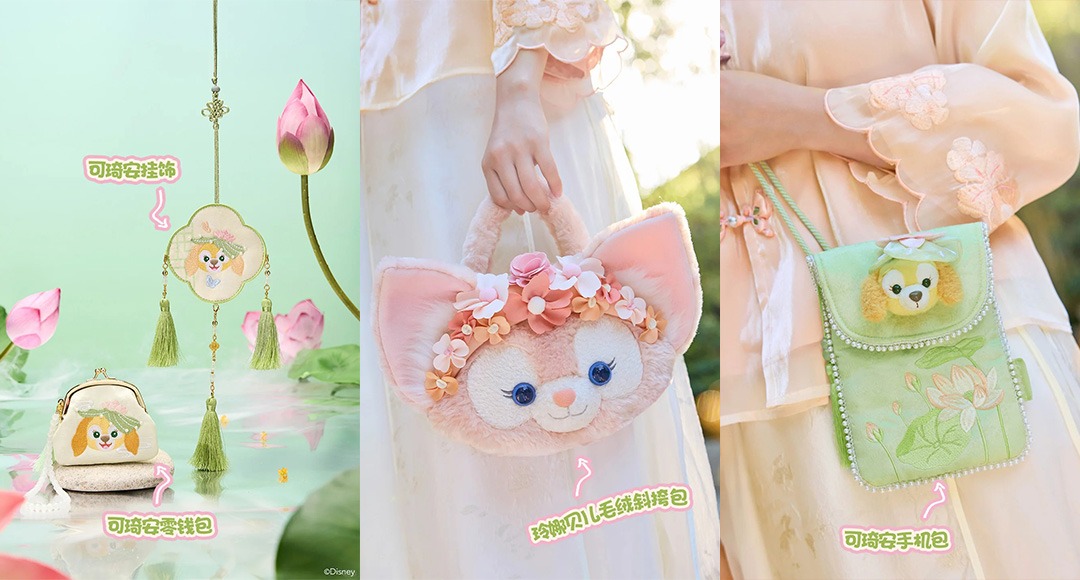 而且還有一系列充滿中式韻味和節日氛圍的精緻單品,比如頭上帶著花環的玲娜貝兒絨毛斜揹包、星黛露花樣頭箍、玲娜貝兒女士外套、摺疊團扇、可琦安零錢包等等,點綴日常生活的可愛瞬間~